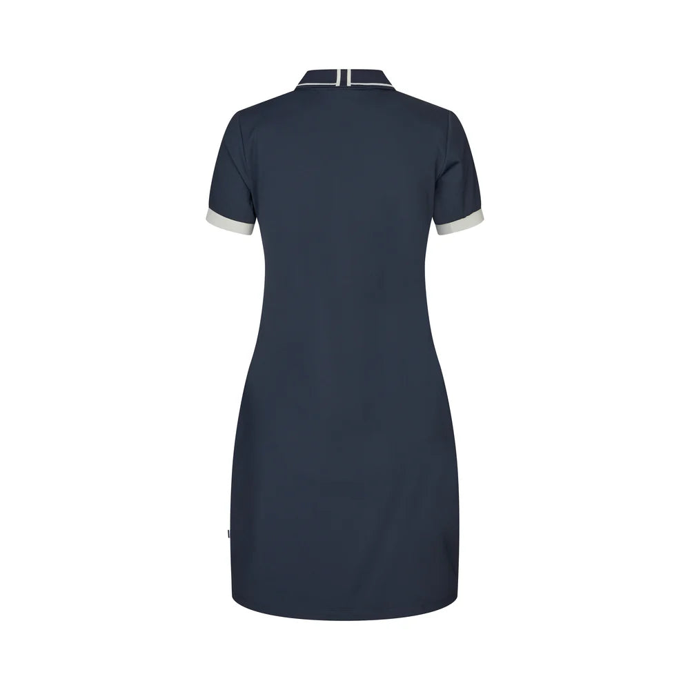 Realizzato in tessuto tecnico piqué polo di alta qualità, questo abito combina proprietà antirughe con una gestione avanzata dell'umidità, garantendo un look fresco e raffinato. Il tessuto leggero e traspirante lo rende la scelta ideale per la primavera e l'estate, sia che tu sia alla scuderia, in viaggio o semplicemente desideri abbracciare la moda ispirata all'equitazione.